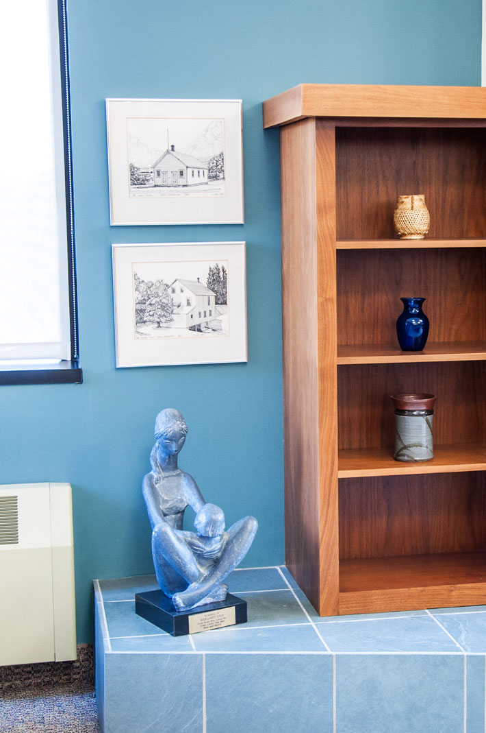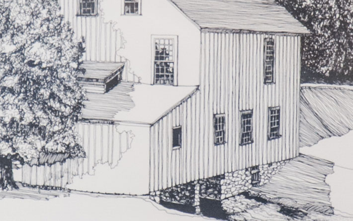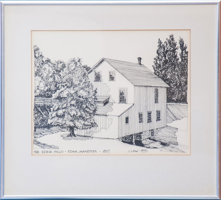 The memory of Edina’s original mill lives on at the library in this drawing by J Low. The artwork shows the old mill on Minnehaha Creek, which helped spur the growth of the surrounding area, providing waterpower and a hub of activity. Built in 1857, the mill changed hands many times; it was owner Andrew Craik who named it Edina Mill as a tribute to his hometown of Edinburgh, Scotland. Though the building is long gone, its memory lingers at the Edina Mills Archaeological Site, which became an Edina Heritage Landmark in 2006.