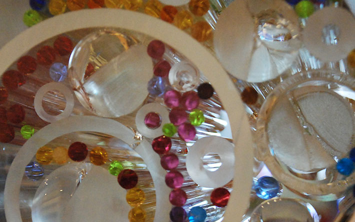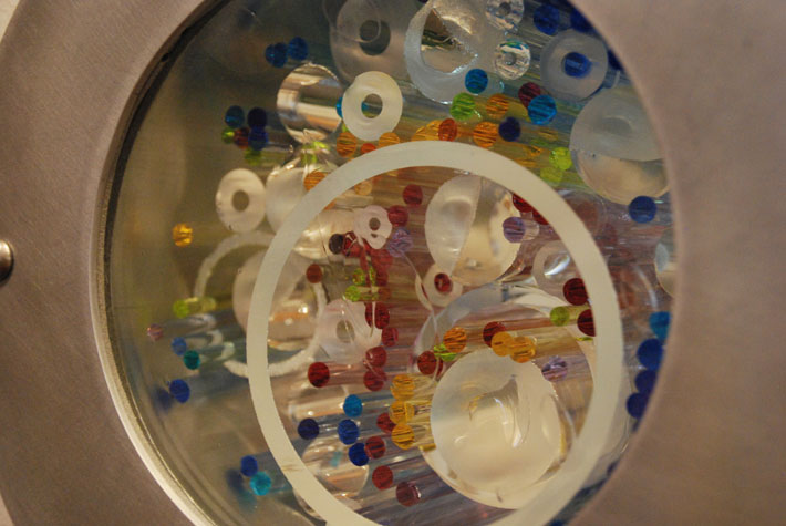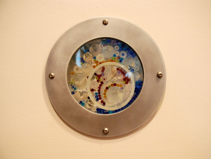 The artist uses his signature stained glass medium to illuminate the library while offering reflections on the experiences within it. “Books,” in soothing blues, meditates on the library’s best-known resource, while “Cosm” and “Ovum” use warmer colors to symbolize the new life found in knowledge. The artist’s work is also featured at Hosmer Library in Minneapolis, and he has been a key figure in glass restoration projects around the Twin Cities.