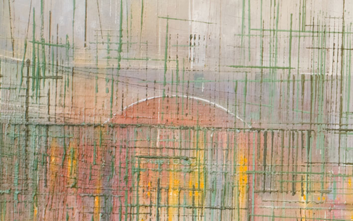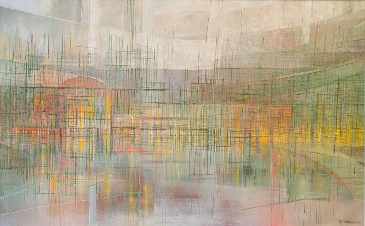 A Macalester professor for many years, William Saltzman never wanted to be confined to just one medium. He made beautiful stained-glass windows (an example of which you can see at Edina Library), copper reliefs, and even worked as a camouflage advisor during World War II. Here at the library, you’ll find an older abstract painting by the Minnesota-born artist, channeling creative energy into exploring the interplay of color, light and texture, the elements intertwining to create depth and reflection.