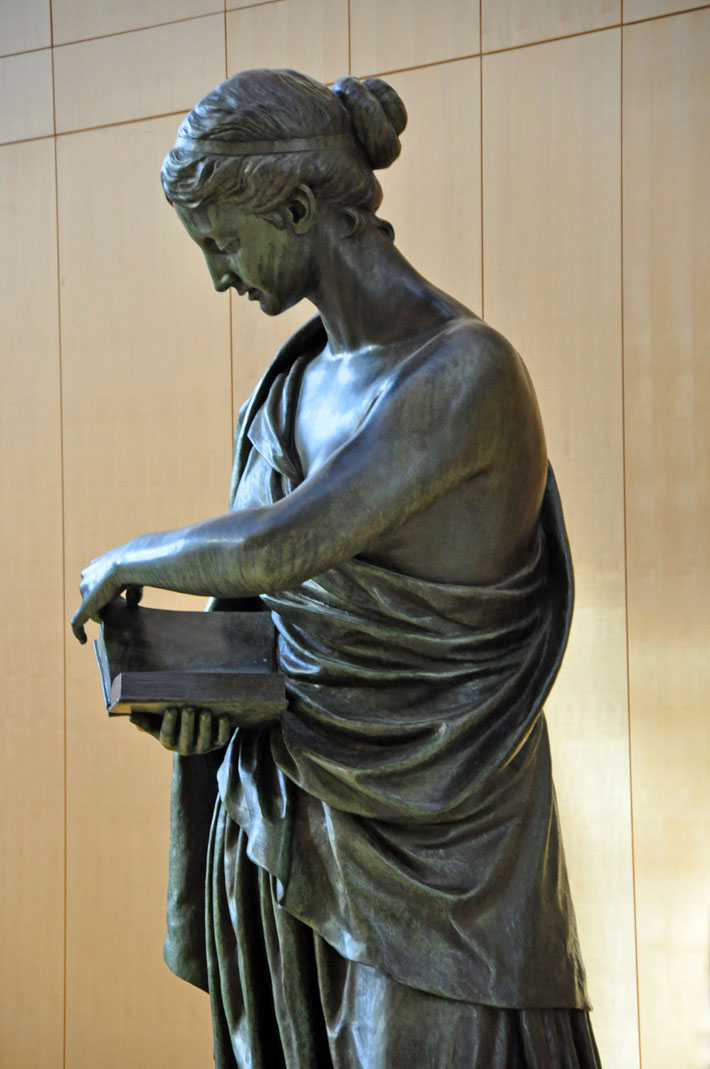 Through the years, “Minerva” has been one of the more consistent aspects of the downtown Minneapolis library. She was there in 1889 when the first central library was built at 10th Street and Hennepin Avenue, and she stood perched over its entryway, in a niche between two windows on the second floor, for decades. When the next library opened at Third Street and Nicollet Mall in 1961, the 1,700-pound bronze beauty made the move there as well. Her adventures continued over time, including a foray to the Minneapolis Institute of Arts for a “Minnesota 1900” exhibit and eventually a place of honor at the new Minneapolis Central Library in 2006.