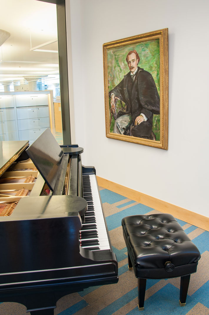 A painting, a piano and a world-famous orchestra. What do these three things have in common? The answer is Emil Oberhoffer. The German-American conductor, shown here in Frances Cranmer Greenman’s oil painting, started the Minneapolis Symphony Orchestra in 1903. He was also its first conductor, leading what’s now known as the Minnesota Orchestra for 19 years. His estate donated his seven-foot Mason & Hamlin grand piano to the library in 1946, helping to nurture musical learning and creativity for many others. The portrait now keeps watch near the piano, merging art from different mediums to honor a Minneapolis music man.