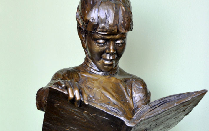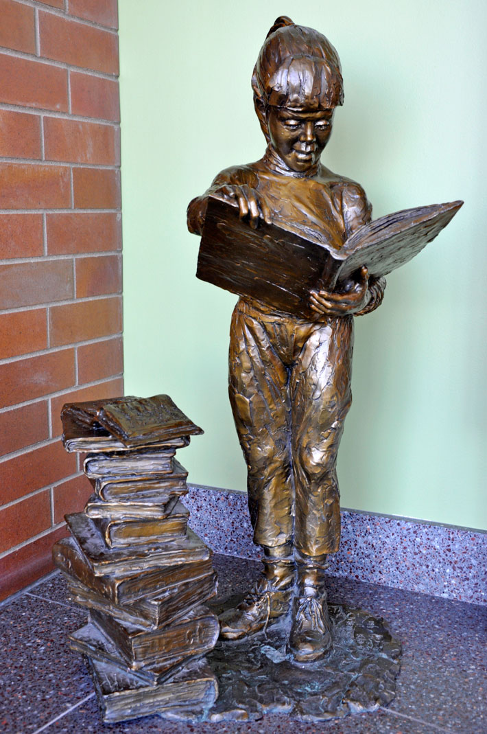 A companion piece to “Charlie Read (Time Out Boy),” Paige Turner came to the Plymouth Library a couple years later in 2001. Initially named “Bookworm II”, she was also given a new name by the children of Plymouth Library. In keeping with the work of sculptor Gary Lee Price, these pieces are meant to inspire and uplift the human spirit.