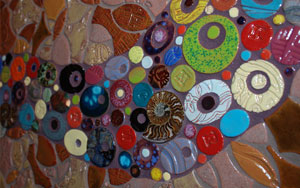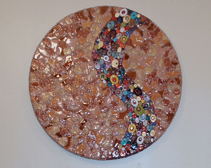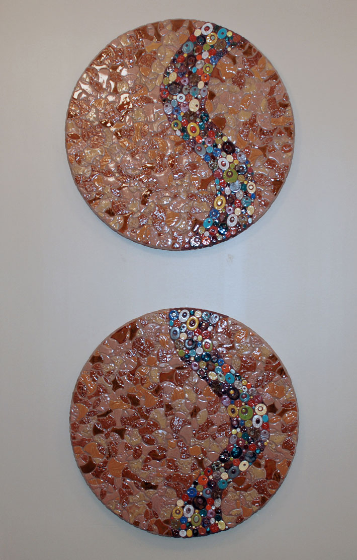 The finished artwork functions as a stopping point for the viewer, allowing them to clear their mind for a moment and allow their eyes to meander through the individual tiles and experience the journey of color and shapes. Each time the work is approached, the viewer notices something new. The flowing designs remind me of how our lives, time and relationships to people, our work, and nature, flow. Many aspects of life are constantly blending and moving, taking us on a journey that in many ways can’t be controlled but still we persevere.