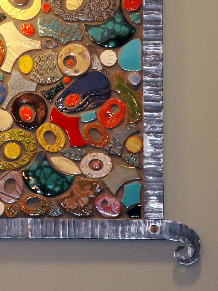 The finished artwork functions as a stopping point for the viewer, allowing them to clear their mind for a moment and allow their eyes to meander through the individual tiles and experience the journey of color and shapes. Each time the work is approached, the viewer notices something new. The flowing designs remind me of how our lives, time and relationships to people, our work, and nature, flow. Many aspects of life are constantly blending and moving, taking us on a journey that in many ways can’t be controlled but still we persevere.