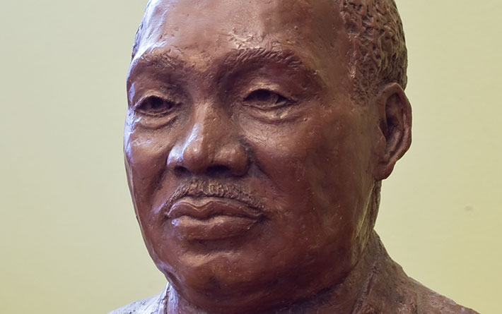 This sculpture of Martin Luther King Jr. offers a little glimpse of what you’ll find if you visit the memorial statues at the Minnesota State Capitol. And for good reason: It served as a model for the larger bronze version installed at the Capitol in 1986. It’s one of several notable memorial sculptures from artist George Bassett, whose other works include a statue of Hubert H. Humphrey and one of Sigurd Olson, both featured at the capitol.