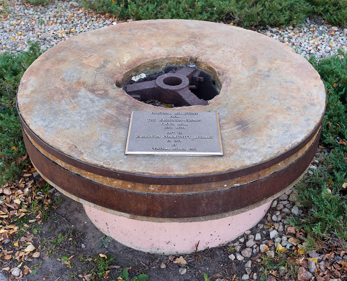 Local businessmen Cadwallader C. Washburn and William D. Washburn played a pivotal role in Minneapolis’ flour-milling industry, and their last name remains a household word around town—and at the library. If you go outside to the northeast corner of the building, you’ll find a more tangible reminder of their influence: a cast bronze flour millstone anchored in the earth. This original millstone was used to grind wheat for the Washburn-Crosby Company, which would one day become General Mills, leaving a lasting mark on the Twin Cities.